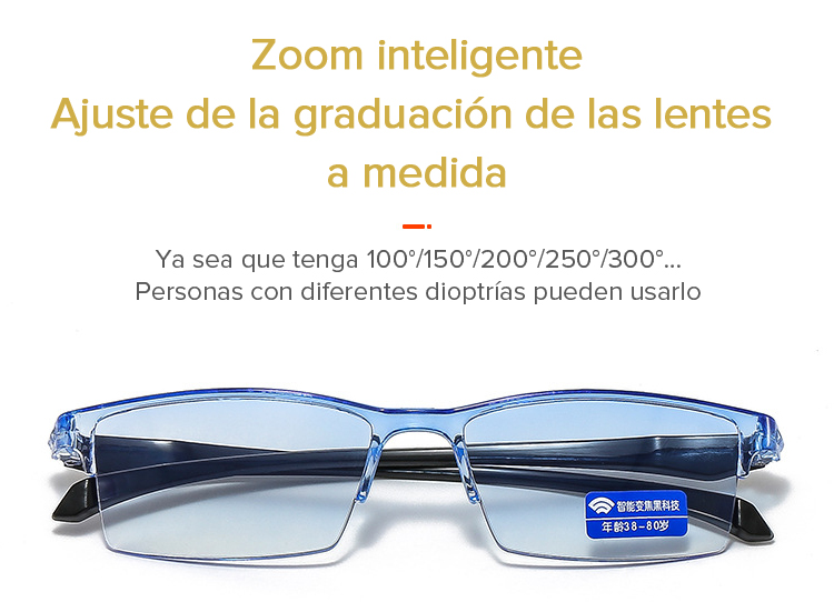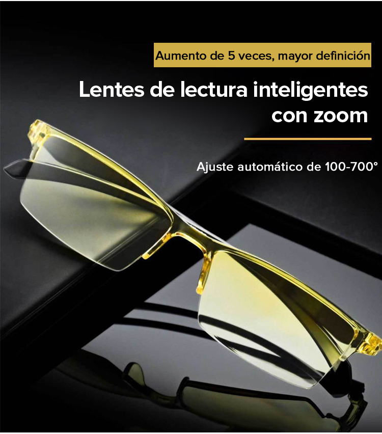 Gafas de lectura antiguas con zoom inteligente